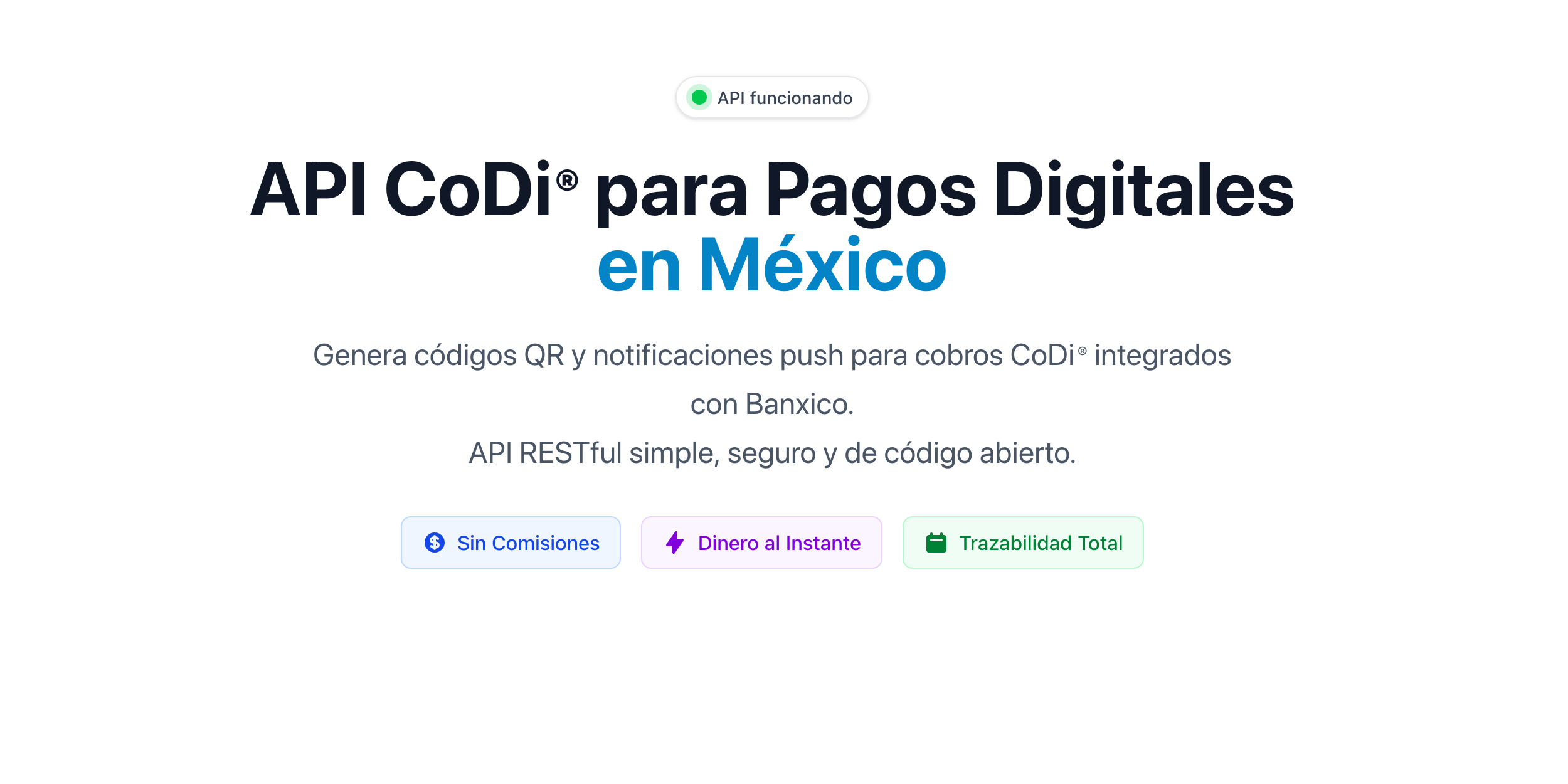 By integrating directly with Banxico's CoDi system, this API enables businesses to accept payments from any Mexican bank account through QR codes or push notifications to mobile banking apps, with zero transaction fees.